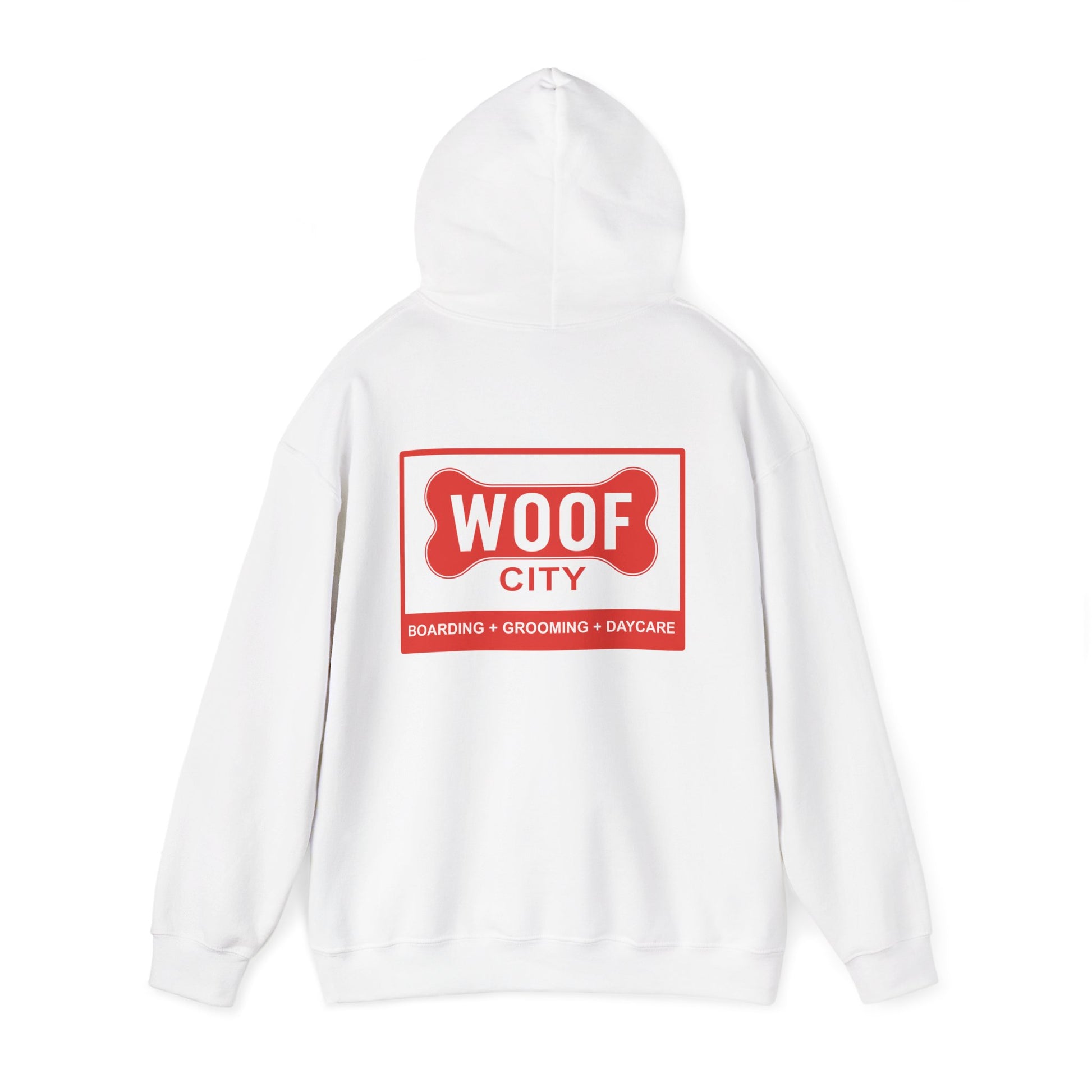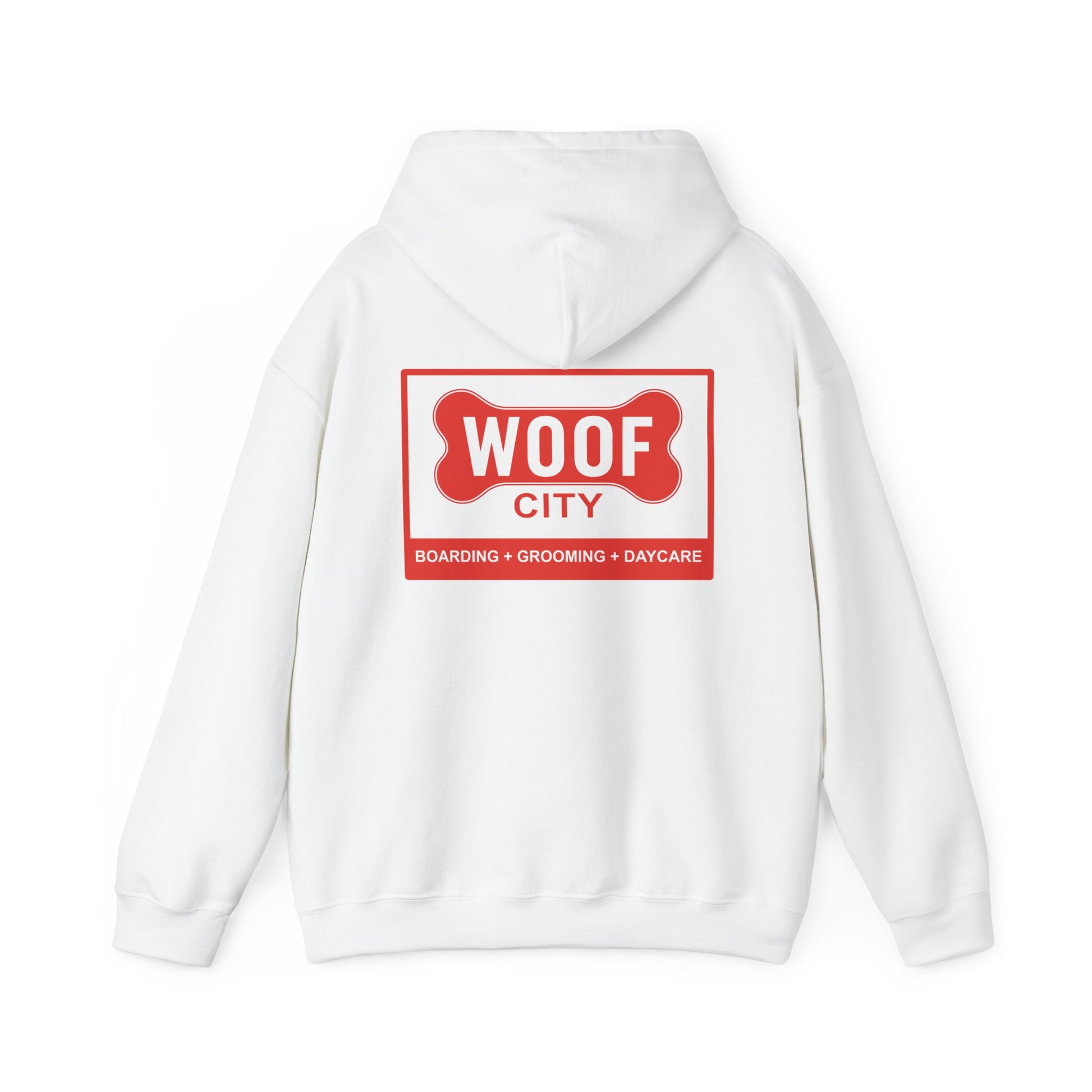 Woof City Logo Sweatshirt — Rail District Frisco Dog Care Hoodie